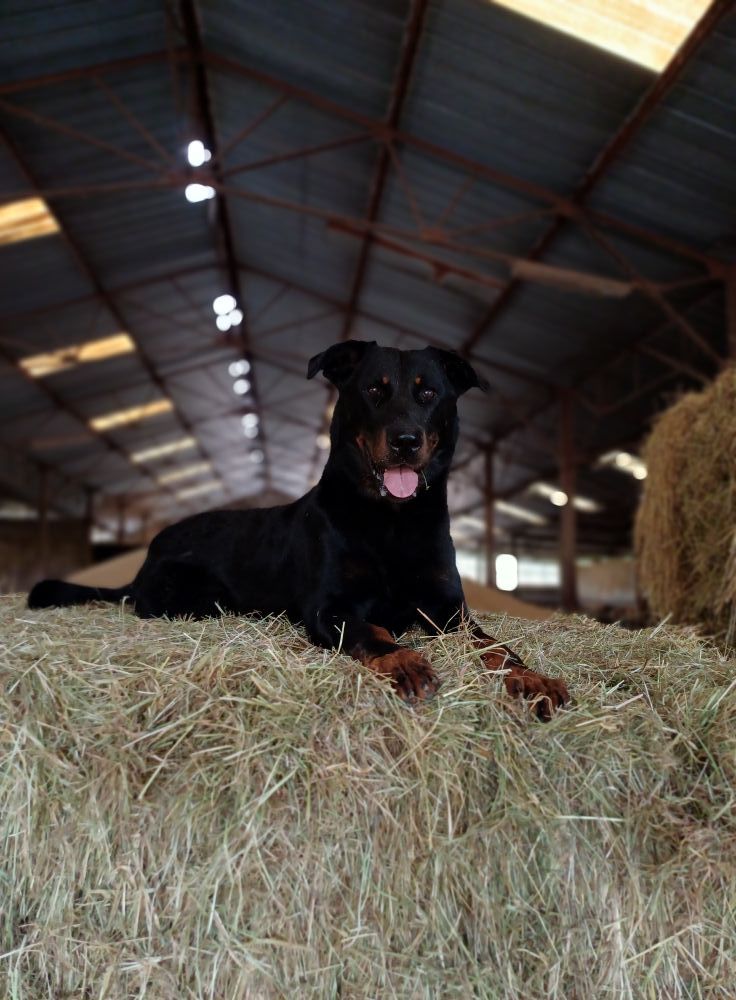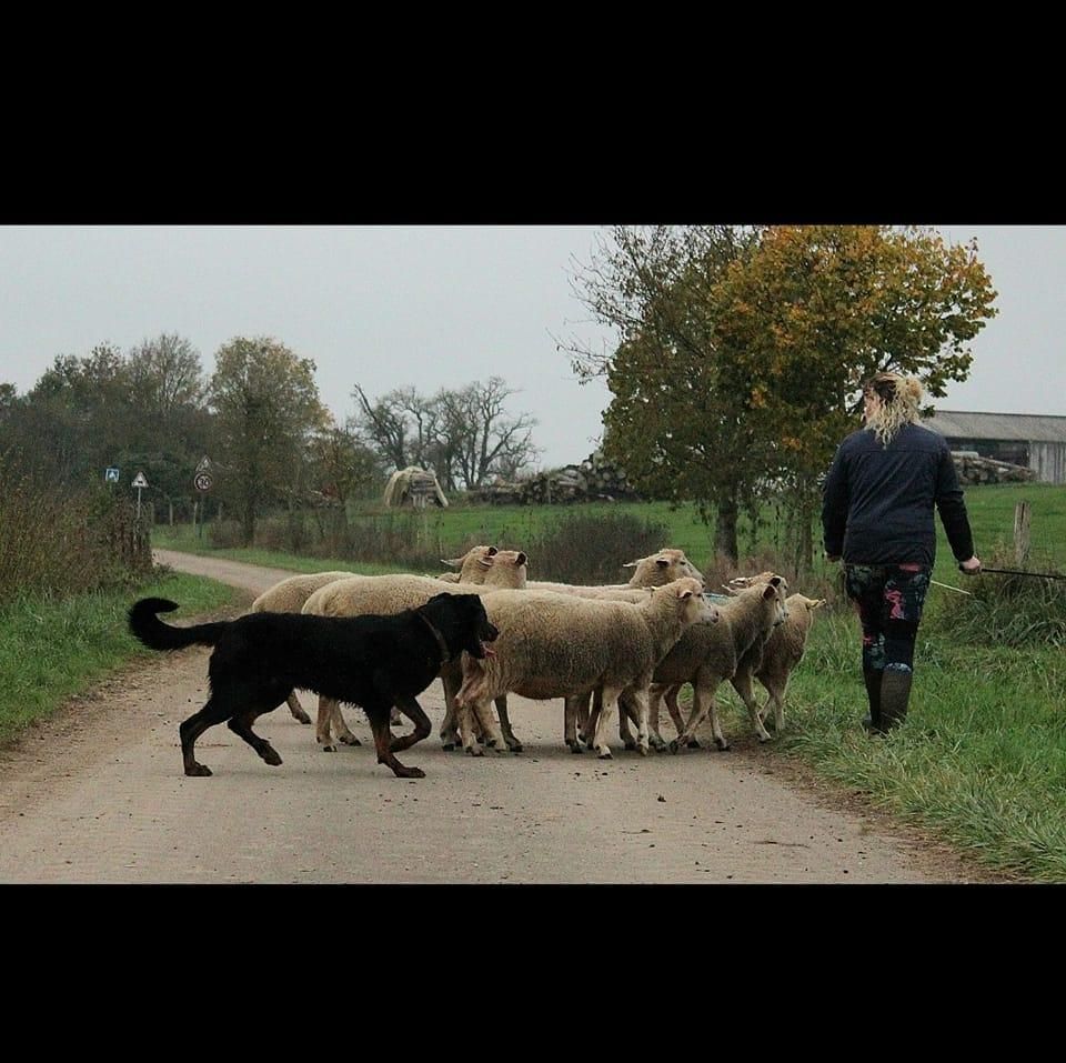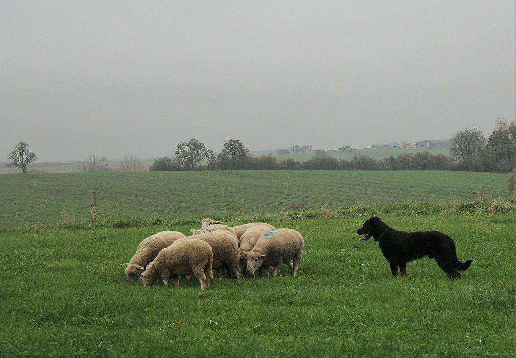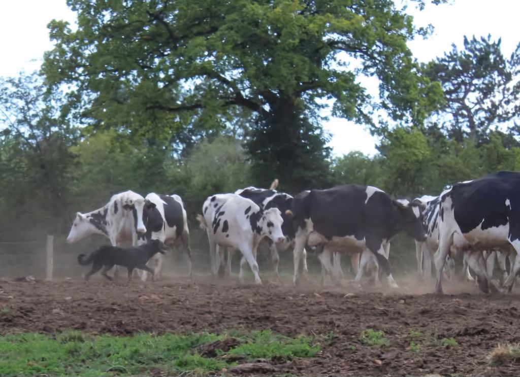 Vrai chien de travail au quotidien a la ferme (bovin, ovin)